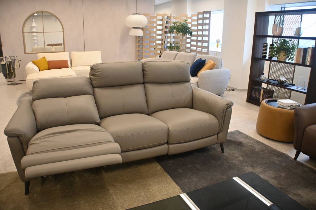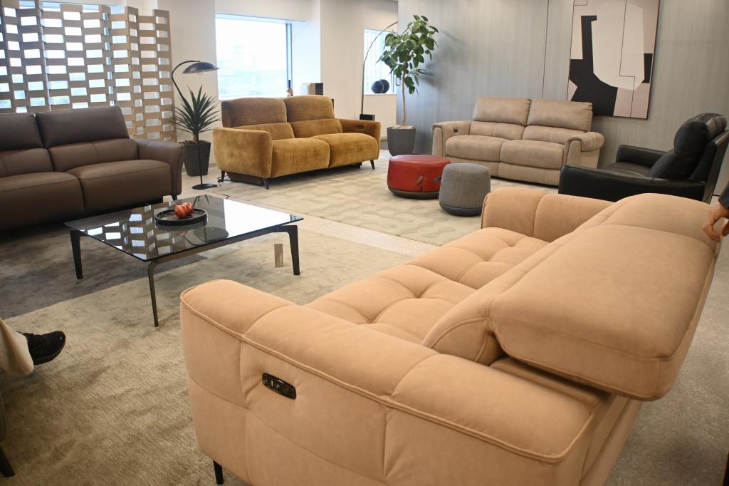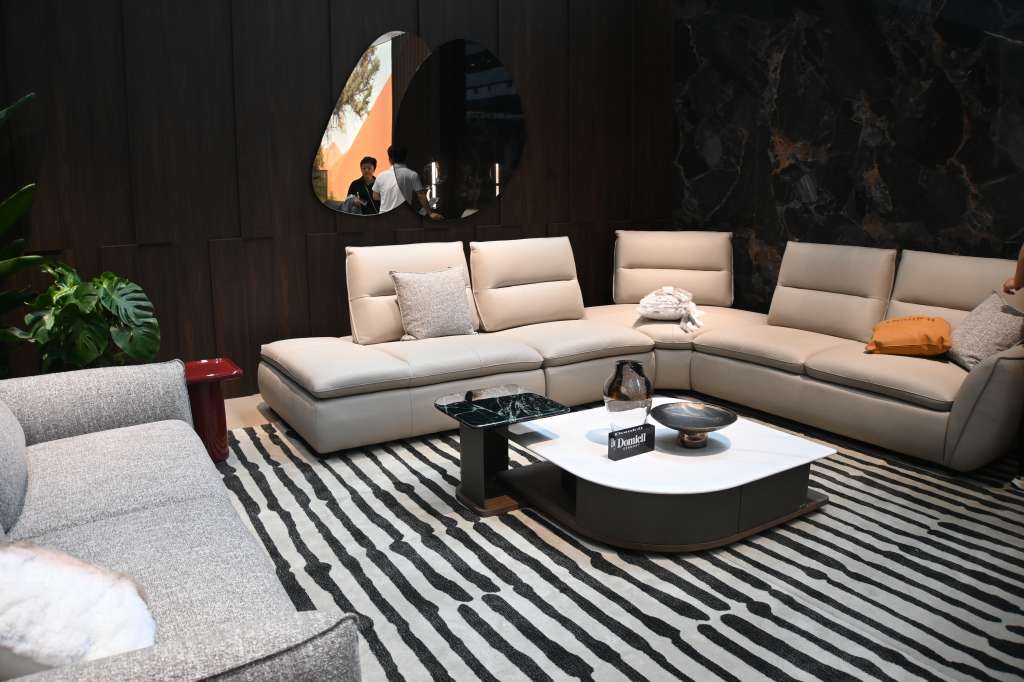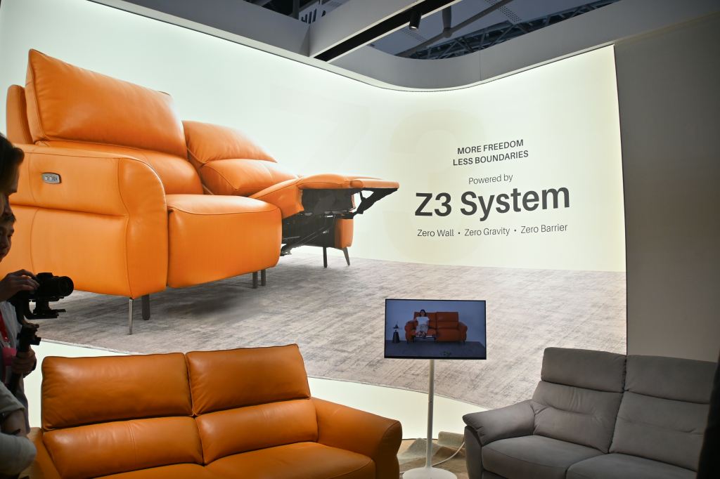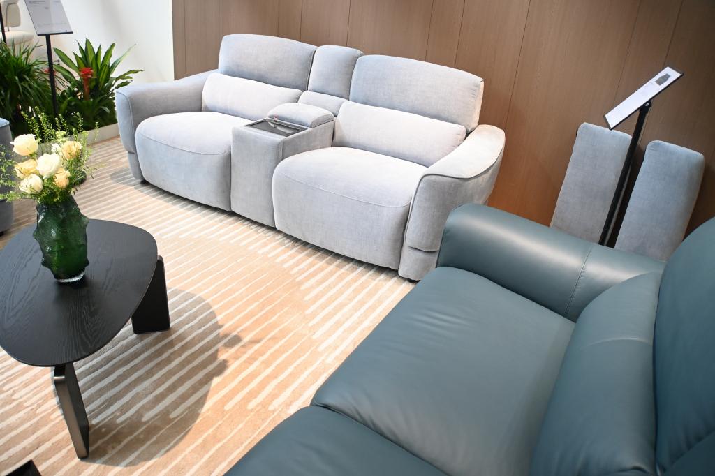 今回のCIFFブースでも、大型の革張りソファから電動機構を備えたモデルまで並べ、レザーを核にしながら、快適性と機能性を広げていく現在の方向を打ち出した。
